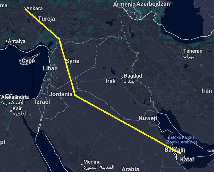 Grafika 1: Szacunkowy przebieg gazociągu łączącego Katar, Arabię Saudyjską, Jordanię, Syrię i Turcję