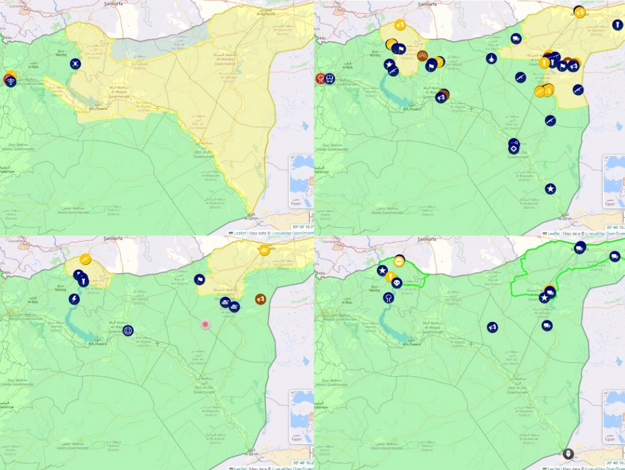Grafika 2: Zestawienie map walk sił rządowych z jednostkami kurdyjskimi w Rożawie (styczeń-luty 2026)